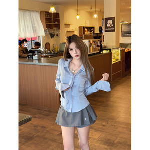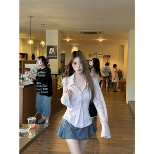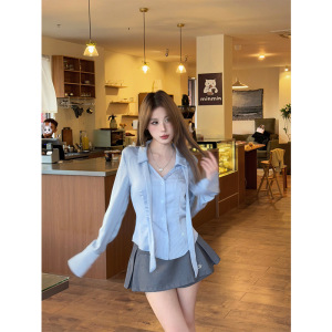 缎面领带条纹收腰修身长袖衬衫上衣女2025秋季新款纯欲甜辣妹裤裙