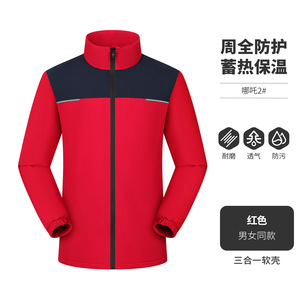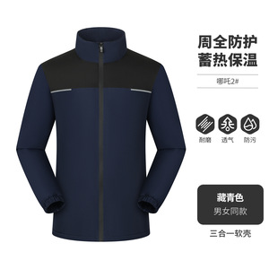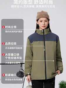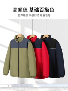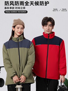 25新款冲锋衣秋冬印logo立领棉服工作服加绒加厚三防外套拼色夹克