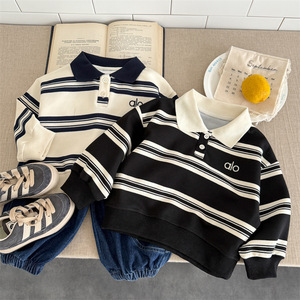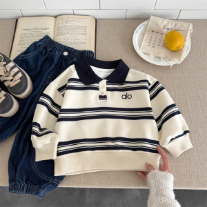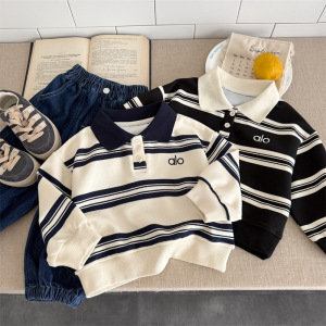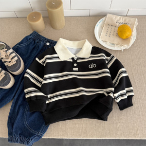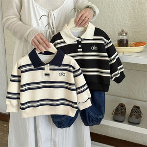 儿童POLO卫衣秋装2025新款男童条纹翻领长袖宝宝韩版百搭洋气上衣