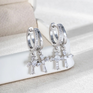 亨森新款花边十字架吊坠男女同款简约小众ins风百搭耳圈耳扣