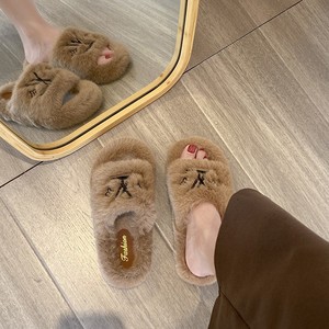 可爱kitty猫豹纹毛毛拖鞋女秋冬季外穿保暖家居棉拖鞋防滑一字拖