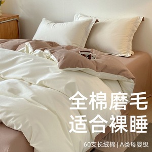 60支全棉磨毛加厚四件套纯新疆长绒棉被套床单学生宿舍三件套批发