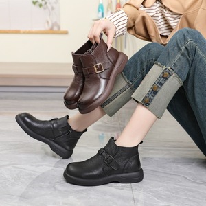 2025新款马丁靴秋单层皮棕色头层牛皮复古真皮厚底单靴女