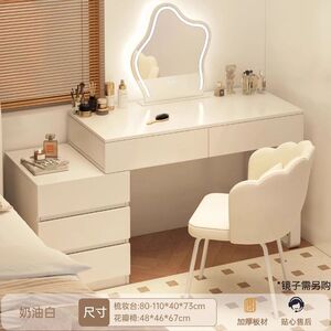 【五抽+柜+椅】80-110奶油白色(无镜)