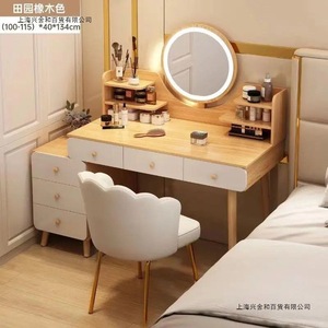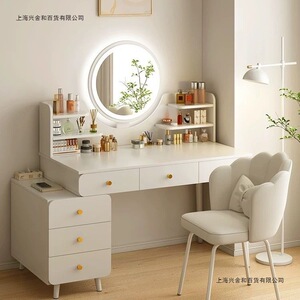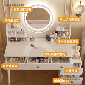 卧室梳妆台简约现代主卧书桌成年人小户型斗柜床头柜一体化妆桌镜