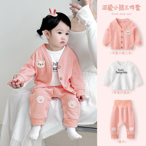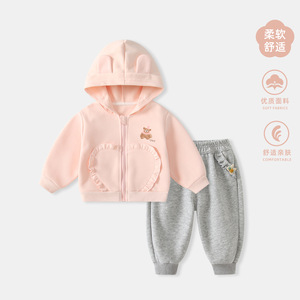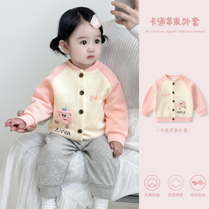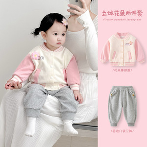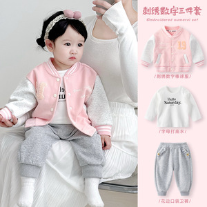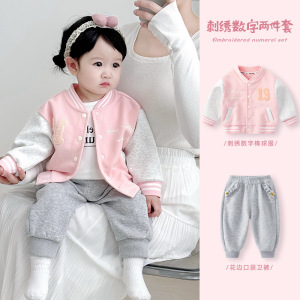 婴儿外套秋装女童连帽衣服上衣儿童卫衣套装女宝宝秋季外出棒球服