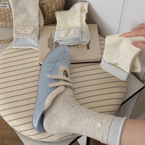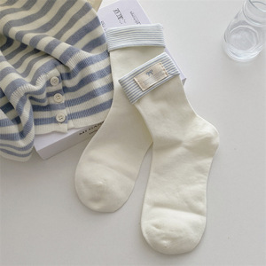 韩系白蓝色春秋季袜子女中筒袜布标贝壳配饰JK风堆堆袜夏季薄款冬
