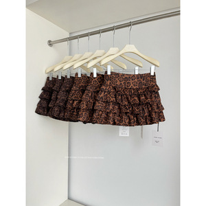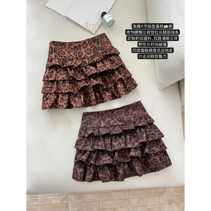 秋上新!古早辣妹豹纹短裙麂皮绒荷叶边蓬蓬蛋糕半身裙