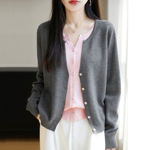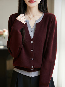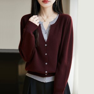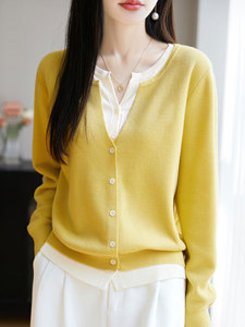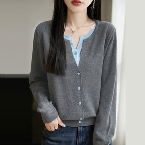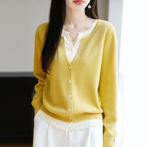 【厂家直供】圆领假两件针织外套毛衣女秋季新款宽松减龄外搭上衣