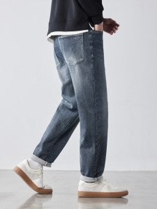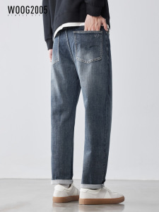 WOOG2005新疆棉水洗蓝色休闲牛仔裤男2025春秋季新款宽松直筒长裤