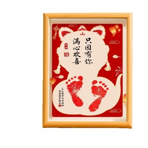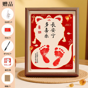 新生婴儿周岁手足印小孩生日满月百天手脚印纪念相框风味仪式感