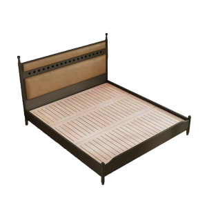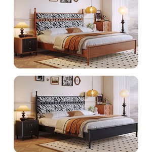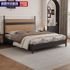 法式复古实木床中古风主卧双人床美式黑色赫本软包床极简现代大床