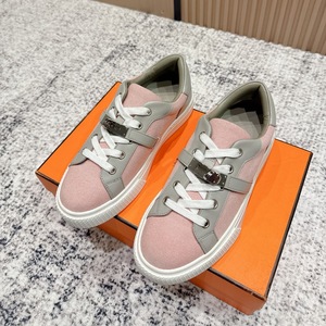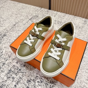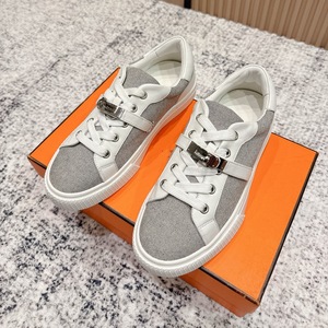 25新款kelly金属扣系带休闲运动板鞋女牛皮拼色帆布平底小白鞋男