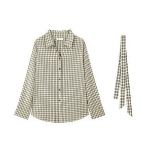 鹭青一原创【观棋】荃棉复古格子衬衫上衣女秋宽松落肩设计感休闲