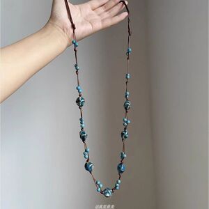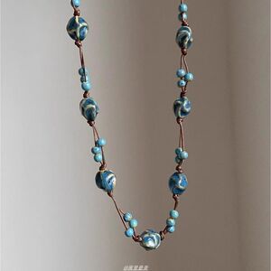 蓝色不规则陶瓷串珠项链