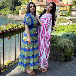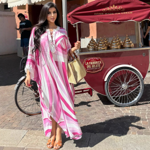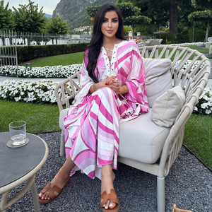 欧美女装气质优雅大码长款慵懒风印花连衣裙女非洲洋气宽松大长袍