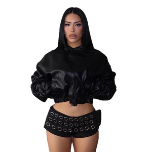 跨境欧美时尚朋克套装女哥特风鸡眼镂空一字抹胸上衣短裤两件套