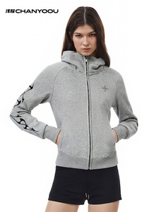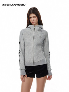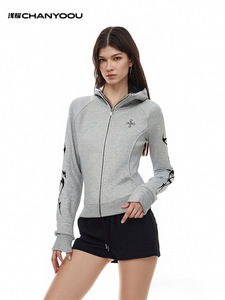 浅耀女装|美式复古辣妹拉链开衫哥特字母印花女收腰显瘦连帽卫衣