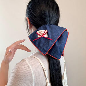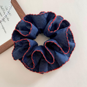 蓝色牛仔方巾大肠发圈女高级感超大扎头发低马尾发饰慵懒风头绳