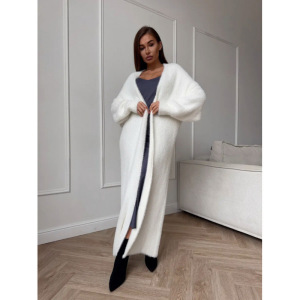 跨境仿貂绒白色针织衫开衫大衣外套女秋冬宽松毛绒绒蓬松长款开衫