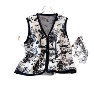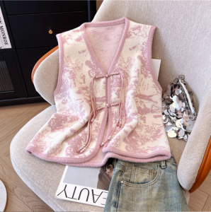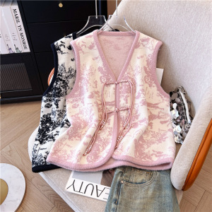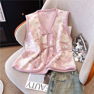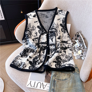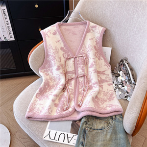 大码女装春秋款新中式国风v领针织马甲胖mm时髦洋气外搭叠穿坎肩