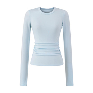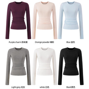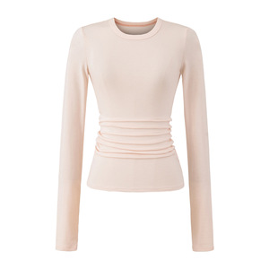 卡戴珊复古圆领长袖T恤女秋季新款美式修身显瘦内搭打底衫上衣潮