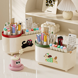 大容量桌面收纳盒加厚旋转笔筒学生可拆卸分格文具化妆品整理盒子