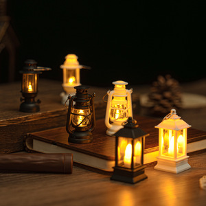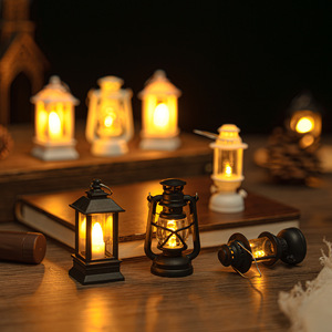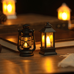 圣诞节欧式迷你小风灯摆件复古led电子蜡烛氛围灯 创意微缩小马灯
