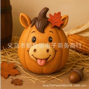 跨境Animal pumpkin statue ornaments农场动物南瓜树脂摆件