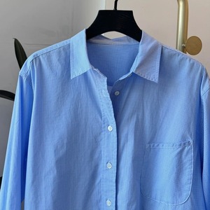 巨好看的小衫,满分品相!!各种清爽减龄,蓝色细格子长袖衬衫