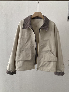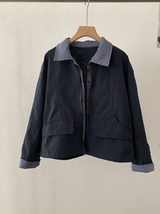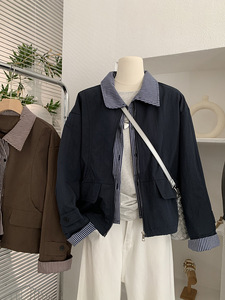 欧玛莱 拼接条纹假两件POLO领夹克外套秋季新款韩系休闲上衣 4576
