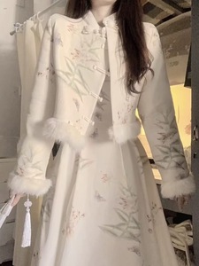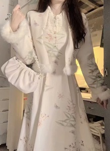 富家千金风感套装裙2024秋冬复古国风连衣裙外套保暖两件装女
