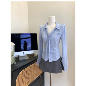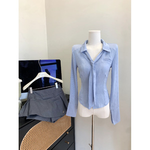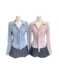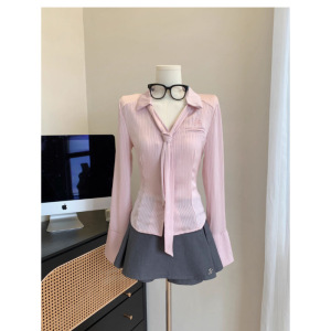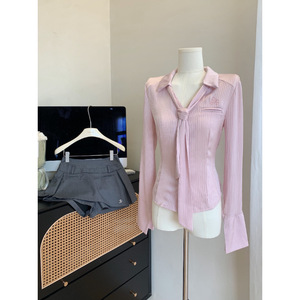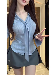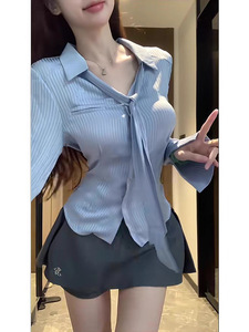 缎面领带条纹收腰修身长袖衬衫上衣女2025秋季新款纯欲甜辣妹裤裙