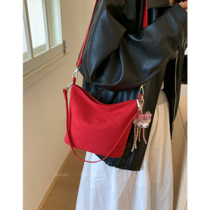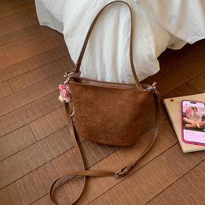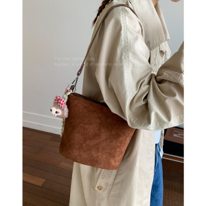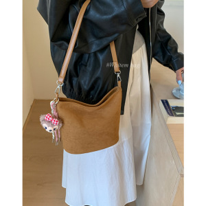韩系小众复古手提包包女式2025新款秋冬单肩斜挎包百搭通勤水桶包