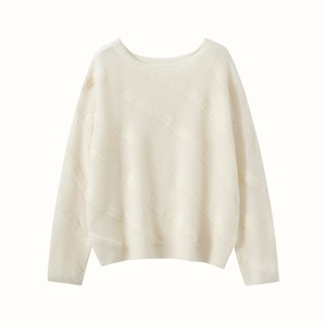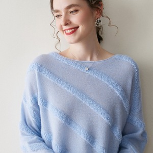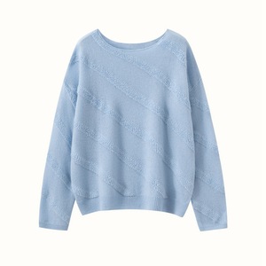 秋冬新款毛巾长袖时尚羊绒衫女打底毛衣一字领针织落肩袖绣套头斜