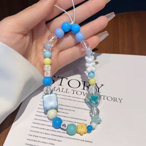 手机链新款蓝色方块小熊串珠链条配饰爱心五角星手机壳挂件手机绳