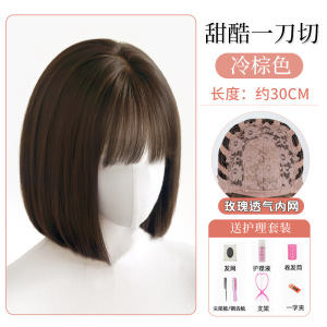 短发假发女一刀切波波头仿真发自然蓬松减龄日常整顶假发女全头套