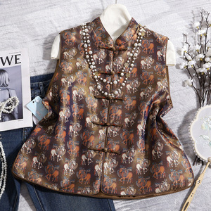 南油骏马织章2025秋季新款新中式国风立领织锦马甲无袖上坎肩背心