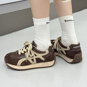 网红爆款厚底真皮阿甘鞋女2025秋季新款韩版百搭复古透气德训鞋子