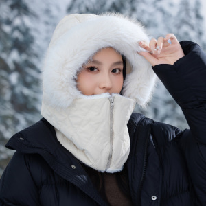 冬季新款格纹加厚保暖帽户外出行可围脖防寒一体帽韩系百搭包头帽