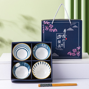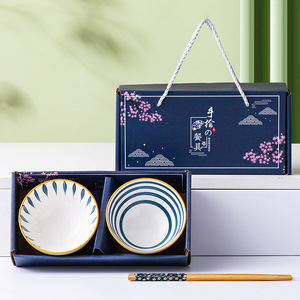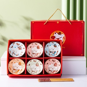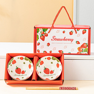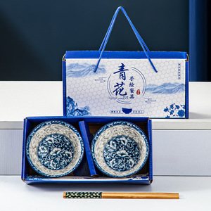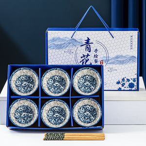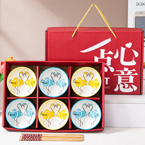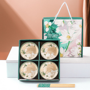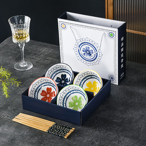 礼品碗套装家用吃饭套碗碗碟山茶花瓷碗陶瓷碗筷套装餐具礼盒装无