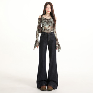 美式复古深蓝色微喇牛仔裤女2025秋季新款高腰弹力显瘦辣妹喇叭裤