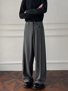 美式A字褶皱西裤男垂感显瘦宽松慵懒风休闲裤简约高级感百搭长裤