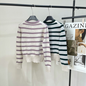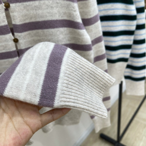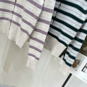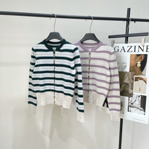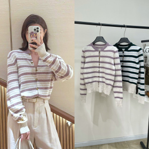 2025早秋温柔条纹针织单排扣长袖开衫宽松显瘦减龄休闲风女款上衣