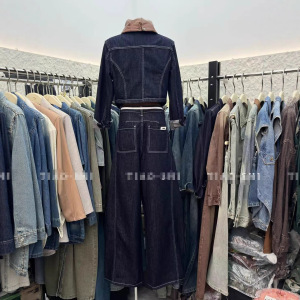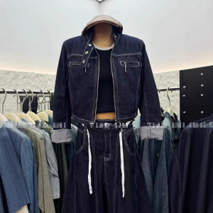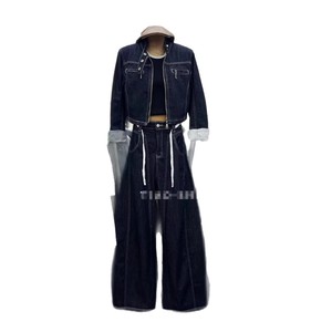 欧洲站2025秋季女装新款时尚设计感牛仔两件套装女短外套阔腿裤