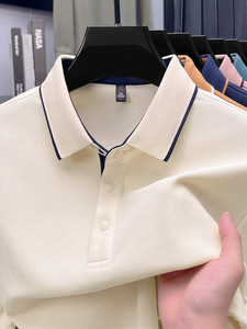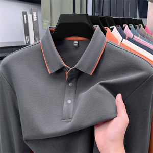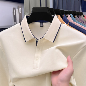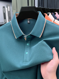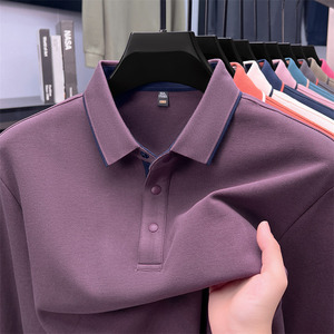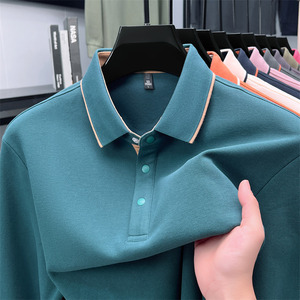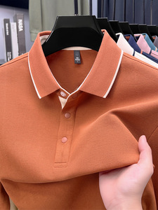 长袖t恤男纯棉翻领中年男士纯色公版舒适柔软吸汗透气百搭POLO衫