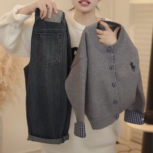 男女童套装儿童洋气韩版针织开衫毛衣贴标牛仔裤春季新款套装