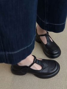 2025年新款复古简约圆头厚底玛丽珍鞋女士通勤百搭黑色小皮鞋单鞋