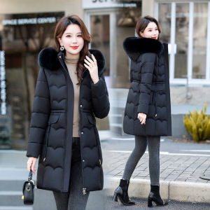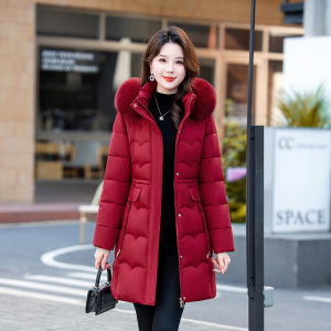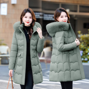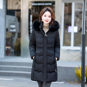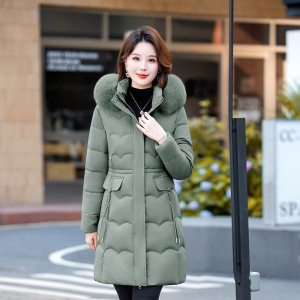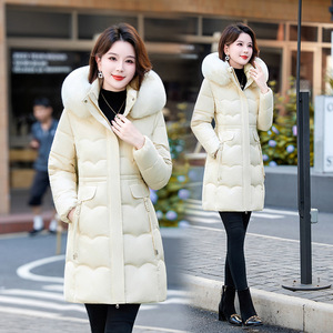 时尚收腰大毛领棉服新款外套2025冬季连帽棉衣中长款加厚棉袄外套