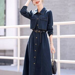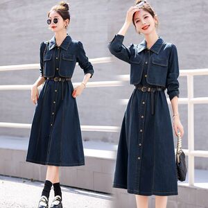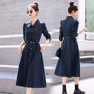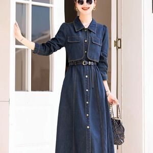 牛仔长袖连衣裙女春春秋2025新款高级感法式气质收腰显瘦衬衫长裙